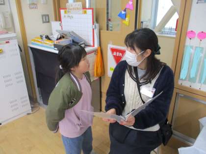 担任の先生から1人ずつ、あゆみを受け取りました。