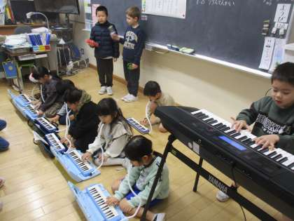 楽器をひくのが得意な子供たちが季節の歌の演奏をしてくれたり、係で考えたゲームをしたりしました。 -