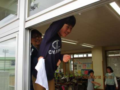 今日は窓ふきに取り組んでいる子たちが見られました。