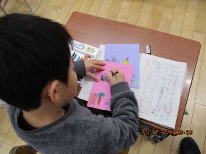 できあがった本を友だちと交換し合いながら楽しみました。 -