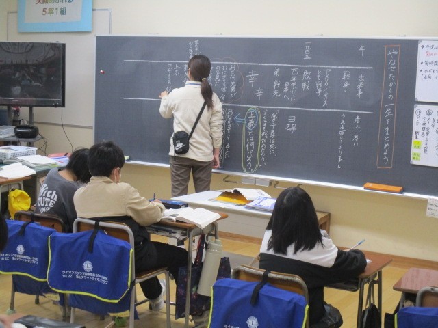 5年1組の1時間目は、国語科の学習でした。やなせたかしの一生についてまとめていました。