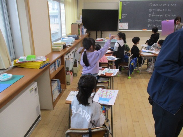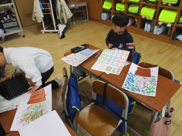 1年生は、3時間目に自分の描いた花の絵の台紙を選んでいました。