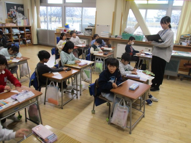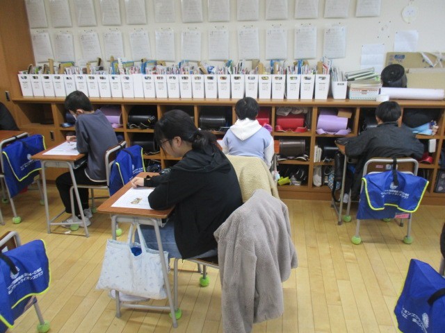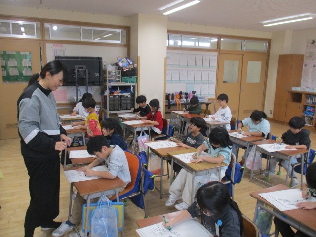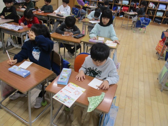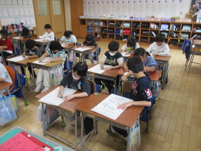 2年生は、3時間目に年賀状をかいていました。