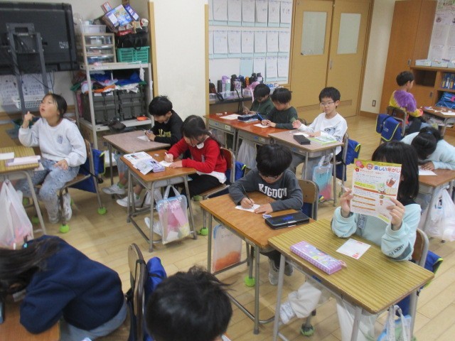 4年生は、5時間目に帰りの準備をしながら、スキー学習の話をしていました。