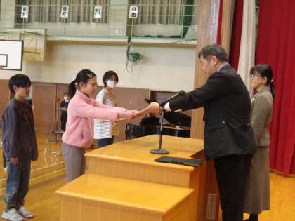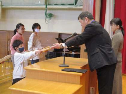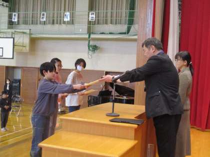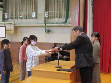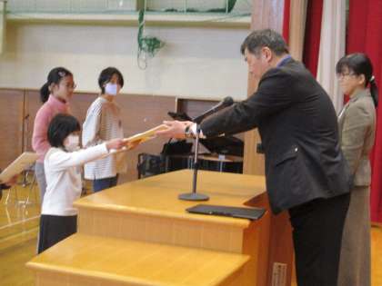 各学年の代表者が、校長先生から修了証を受け取りました。