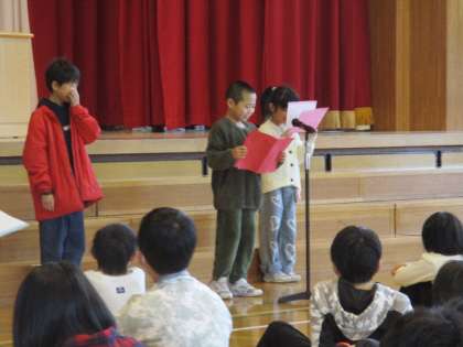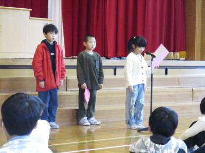 1・3・5年生の代表児童が、1年間頑張ったことの発表をしました。