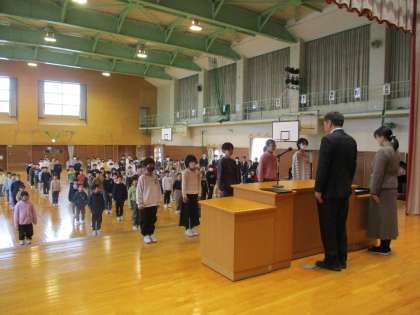 どの子も校長先生と目をつなぎ、堂々と受け取る姿に、成長を感じました。