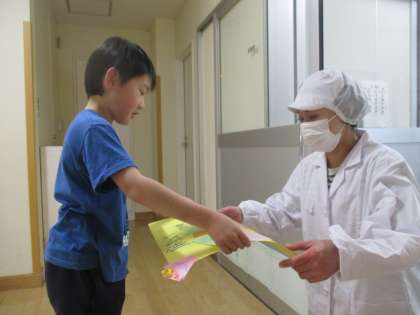 今日は、今年度の給食最終日です。2年生は、栄養バランスのよい給食の献立を考え、給食の準備を見守ってくださった給食の先生に、今までの感謝の気持ちを伝えました。