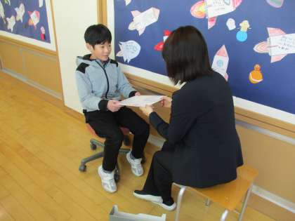 代表者が校長先生から受け取った修了証書を、教室で1人1人担任の先生から受け取りました。