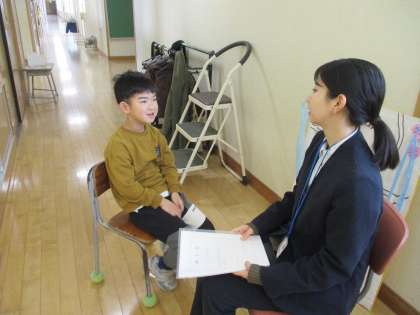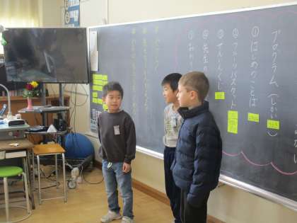 とても緊張した様子でしたが、全校のみんなの前で堂々と発表し、戻ってくる仲間を温かく讃える姿に、成長を感じました。