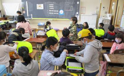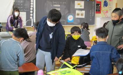 子供たちは、毎朝1年生教室へ足を運び、朝の準備の手伝いをしています。