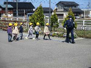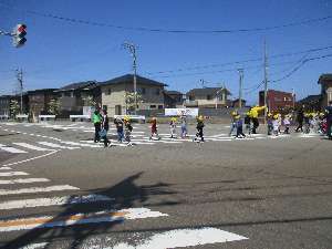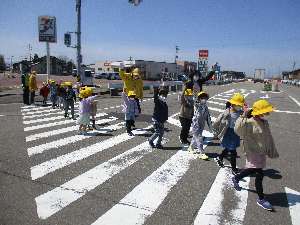 学校からつばめ野への歩行コースでは、しっかりと左右を確認し、手をあげて横断歩道を渡っていました。みんなとても上手でした。 -