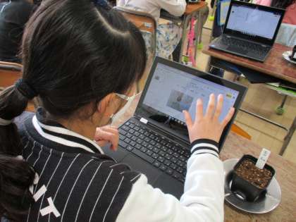 これから、クロムブックで写真を撮り、成長の様子を確認していきます。