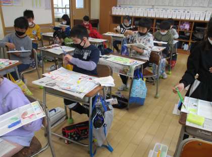 初めて、図画工作科の学習をしました。子供たちは、絵を描いたり、工作を作ったりすることを楽しみにしているようでした。