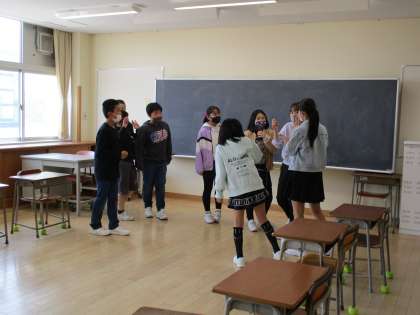 今年度のスポーツデーのファミリー競技では、昨年同様ダンス玉入れを行います。今日は、各団の6年生が考え、練習してきたダンスを下級生に披露し、振り付けを教えました。どの団も、6年生の動きを真似て、元気に踊っていました。