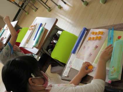 国語や算数、道徳、書写など、少しずつ学習に取り組んでいます。 -