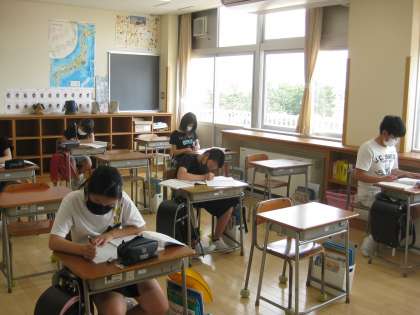 1年生から6年生まで、校舎内に元気な子供たちの姿が戻ってきました。一人一人が意識して、授業や休み時間を過ごしています。間隔をあけて、前を向いての学習となりますが、落ち着いて取り組んでいます。