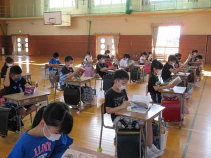 久しぶりに全学年の児童が登校しました。今週は、登校日に新しい学校生活様式や校時に慣れる練習をしていますが、みんな落ち着いて取り組んでいます。登校した児童から静かに読書することも定着してきています。