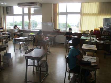 昨日、今日と2班に分かれて子供たちが登校してきました。今週に入って、2度目の登校で、少しずつ、新しい学校生活の過ごし方にも慣れてきているようです。広い理科室で、一人ずつ、気体検知管を使って実験を行ったり、コンピュータ室で、キーボードのタイピング練習をしました。また、教室でも、じっくりと学習に取り組むとができました。この二日間は、弁当持参で久しぶりに1日学習しました。充実感と共に、ちょっぴり疲れも感じていたようです。
