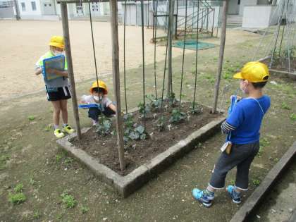 これからまいあさ水やりをして、おいしいやさいができるようにがんばりましょう! -