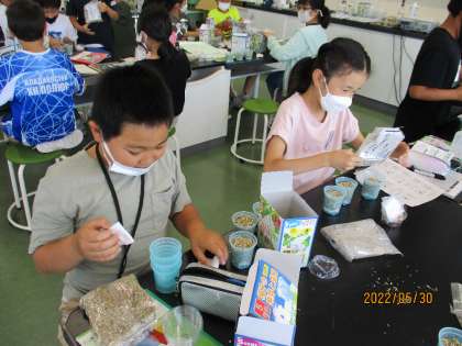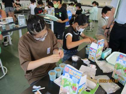 理科の授業で、発芽の実験の準備をしました。