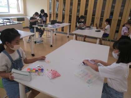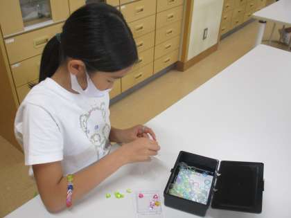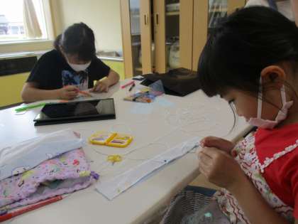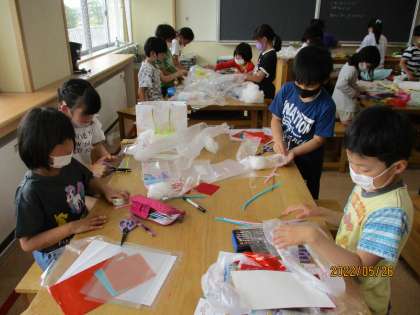 今日は手芸をしました。家からもってきたいろいろな材料を使って、楽しそうに作っていました。