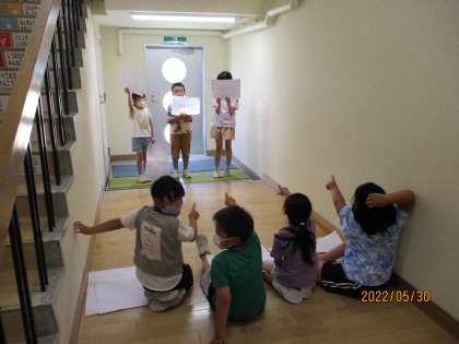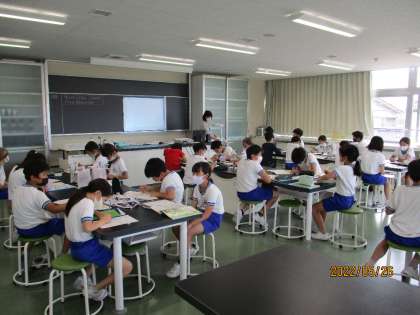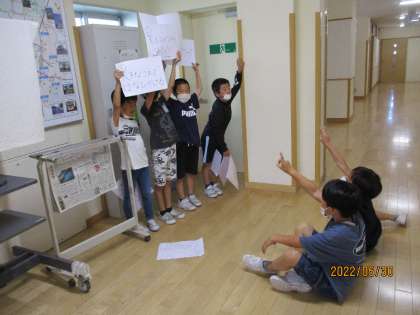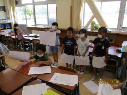 2年生教室では、生活科の時間に、クイズの練習をしました。