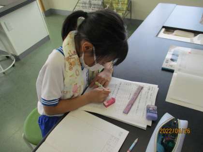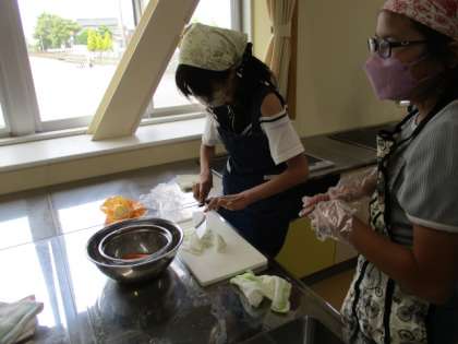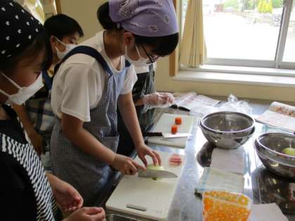 今年度初めて調理実習をしましたが、班で上手く役割分担をして、手際よく活動していました。 -