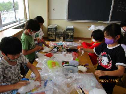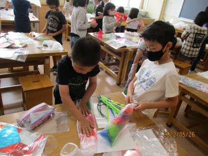 図工の時間に図工室で工作をしました。