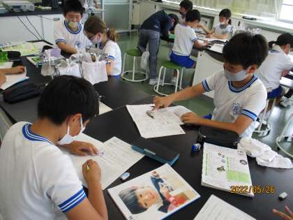 目、鼻、手を使って、上手に観察していました。友達と「『ぱ』ってどう書くんやったっけ?」と教え合っている姿もあり、素敵でした。
