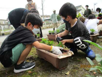 倉垣っ子のみんなに苗植えの協力を依頼したところ、たくさんの子供たちが協力してくれました。 -