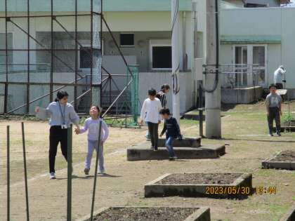 4月に植えたインゲン豆とトウモロコシの観察をしました。