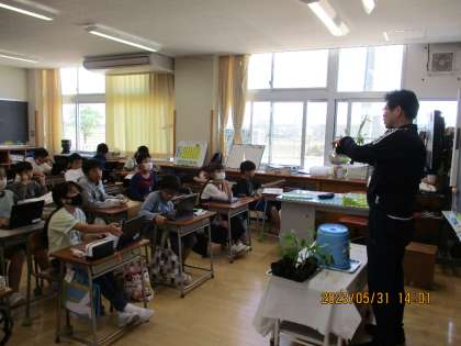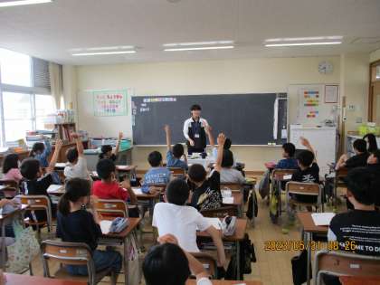 5年生はBFCバッジ授与式を行い、火災への対策や防火に関する興味関心を高めています。BFCクラブの一員としてバッジを安全帽につけ、これから真剣に防火を広める活動を取り組んでいきます。
