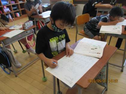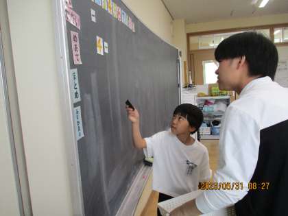 仲良くなった実習生さんとの学習に、子供たちはとても嬉しそうでした。 -