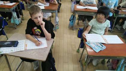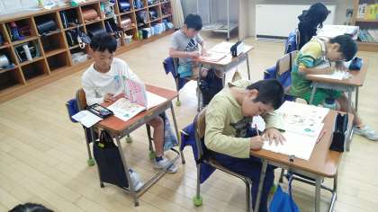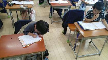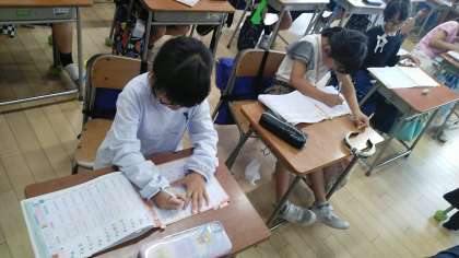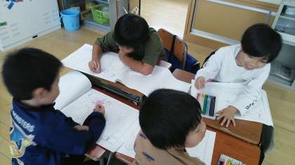 2年生の5時間目は、国語科の学習でした。かん字ドリルを使って漢字練習を進めていました。