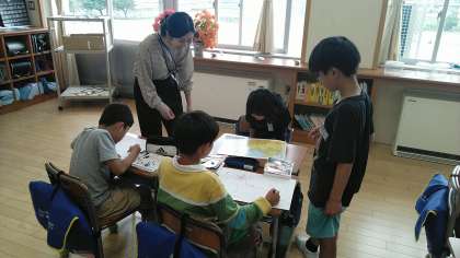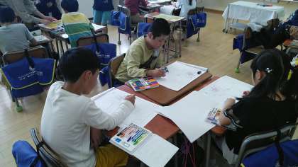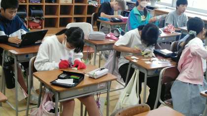 6年生は、1時間目に「消しゴム判子」をつくっていました。とても丁寧に彫刻刀で彫っていました。すてきな判子が次々にできあがっていました。