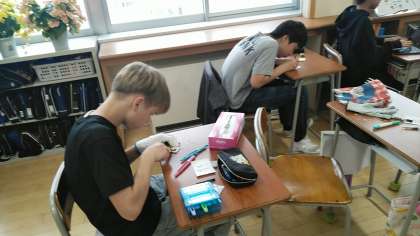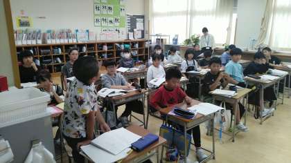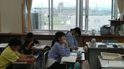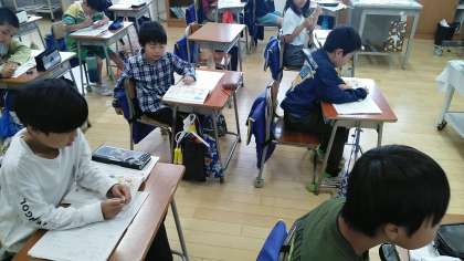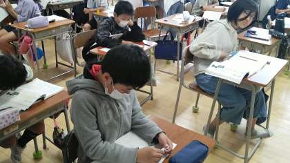 5年生の5時間目は、音楽科の学習でした。「小さな約束」という曲の楽譜にドレミをかいていました。楽器で演奏する準備みたいです。