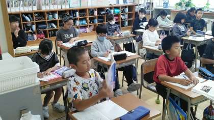 3年生の1時間目は、国語科の学習でした。「漢字の広場」という学習で、教科書の絵を見ながら、そこに出ている漢字をいくつか使って文章を考えます。たくさん漢字を使って、おもしろい文章が書けるといいですね。