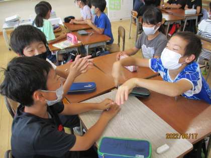 じゃんけんで勝つだけでなく、負けてみたり、心を合わせてあいこになってみたりする活動を通して、クラスの仲間との仲を深める活動をしました。 -