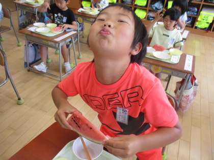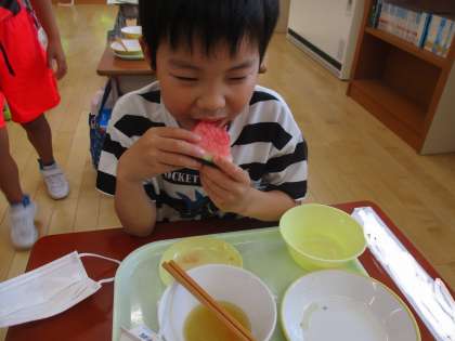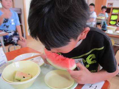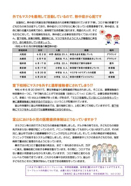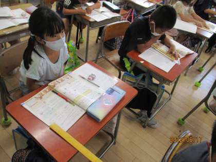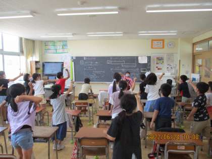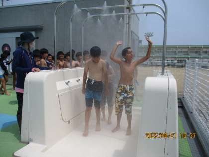 本日は予想最高気温が37度と、大変暑くなることが予想されます。登校前に十分な水分補給とマスクを外して登校するように声かけをお願いします。また、いつもより多めに水分を持たせてくださるようお願いいたします。