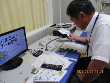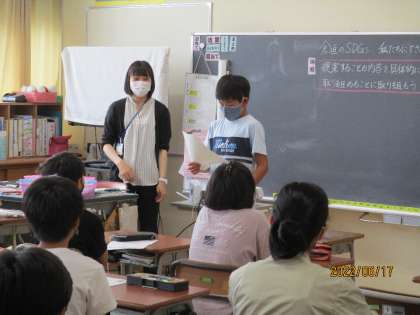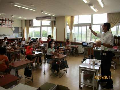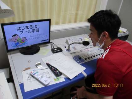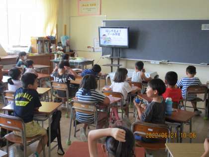 ぐんぐんタイムに、各教室で、校長先生と大塚先生からの安全で楽しい水泳学習についてお話を聞きました。 -