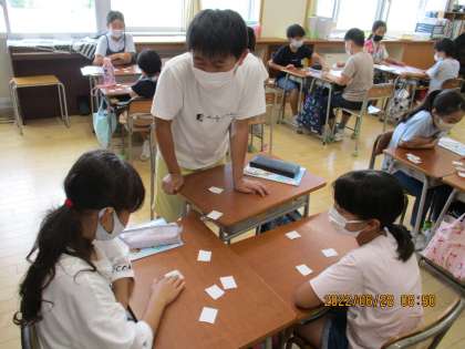 英語で書かれているカードを合わせる神経衰弱は、大盛り上がりでした。 -