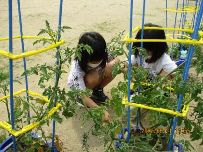 美味しい夏野菜が収穫できるように、お世話の仕方を仲間同士で相談し、丁寧にお世話する様子が見られました。 -
