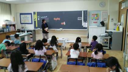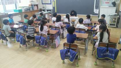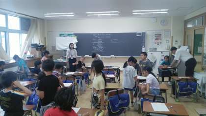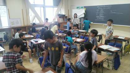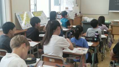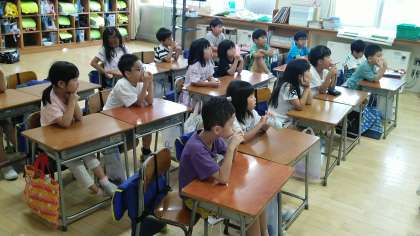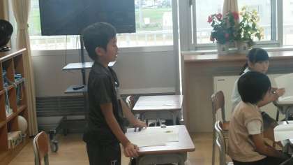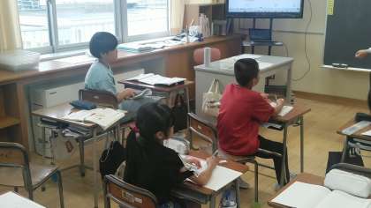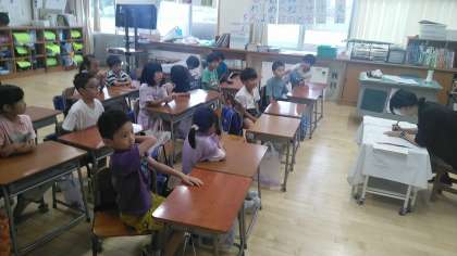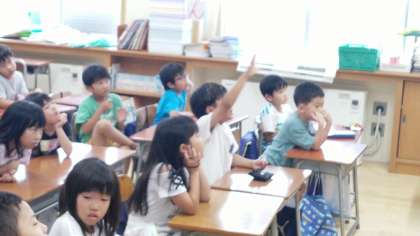 1年生は、1時間目の終わり頃に質問によるアンケートらしきものをとっていました。「好きな教科は?」体育科や図画工作科が多いみたいです。
