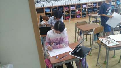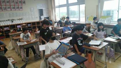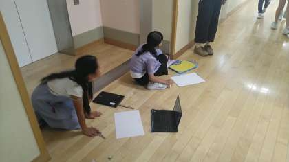 2時間目に6年生が白い紙を持って校内をまわっていました。校内の描きたい場所を探して絵を描くらしいことが分かりました。どこを選んで、どんな絵に仕上げるのか楽しみです。
