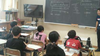 6年生の1時間目は、算数科の学習でした。「学習のたしかめ」をする前に、1学期に学んだことの復習をしていました。