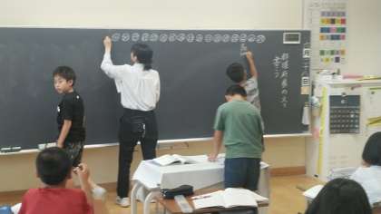 4年2組の1時間目は、国語科の学習でした。漢字を学習するところで、47都道府県を紹介する文を漢字を使ってつくる問題の2回目でした。「大阪城があった。」すぐに何人かの人が文をつくっていました。