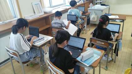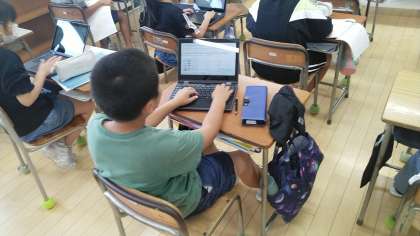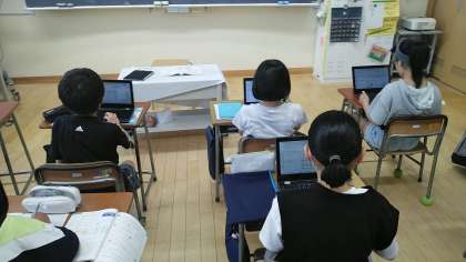 4年2組の2時間目は、算数科の学習でした。授業の最後の方だったので、学んだことの振り返りをクロームブックを使ってやっていました。
