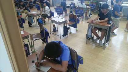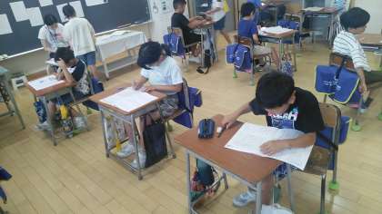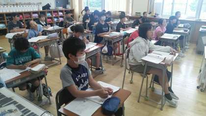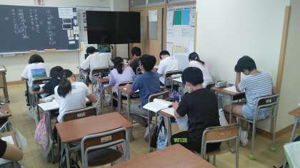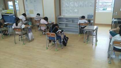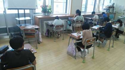 3年生は、1時間目に漢字テスト(ミニ)をしていました。問題数は、少ないみたいですが、先生にみてもらったあと、直しや練習までしっかりとしているみたいでした。
