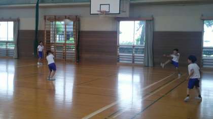 3年生の4時間目は、体育科の学習でした。体育館でキックベースボールをしていました。